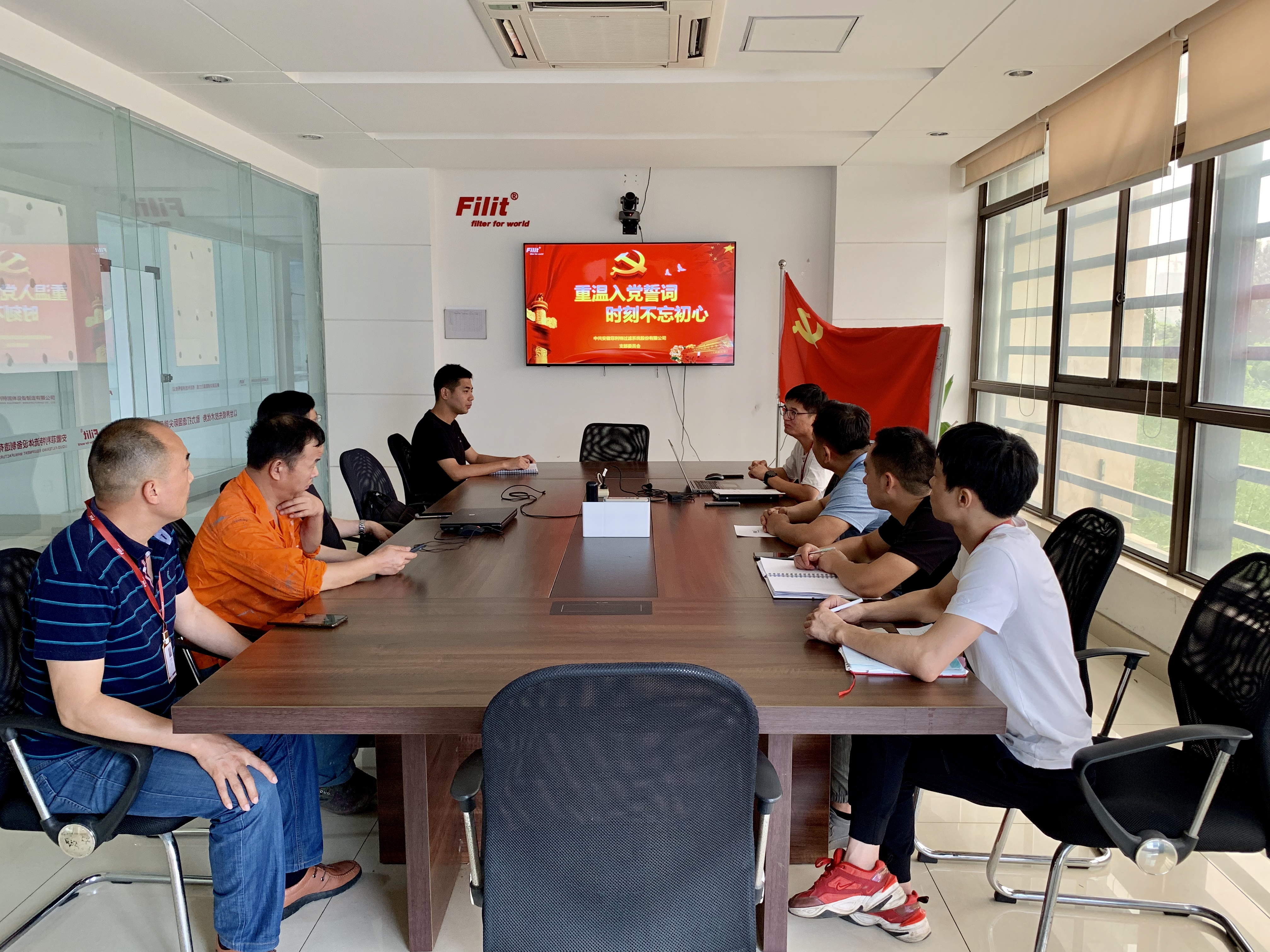 7月1日上午,安徽菲利特過濾系統股份有限公司黨支部全體黨員在會議室召開建黨99周年座談會,會議由綜合部部長汪偉主持。以“重溫入黨誓詞,時刻不忘初心”為主題,結合工作實際,圍繞堅定理想信念,樹立宗旨意識、增進黨性修養、曬黨齡、說感言,弘揚愛黨精神,傳遞黨員情懷,奮力推進安徽菲利特高質量發展。