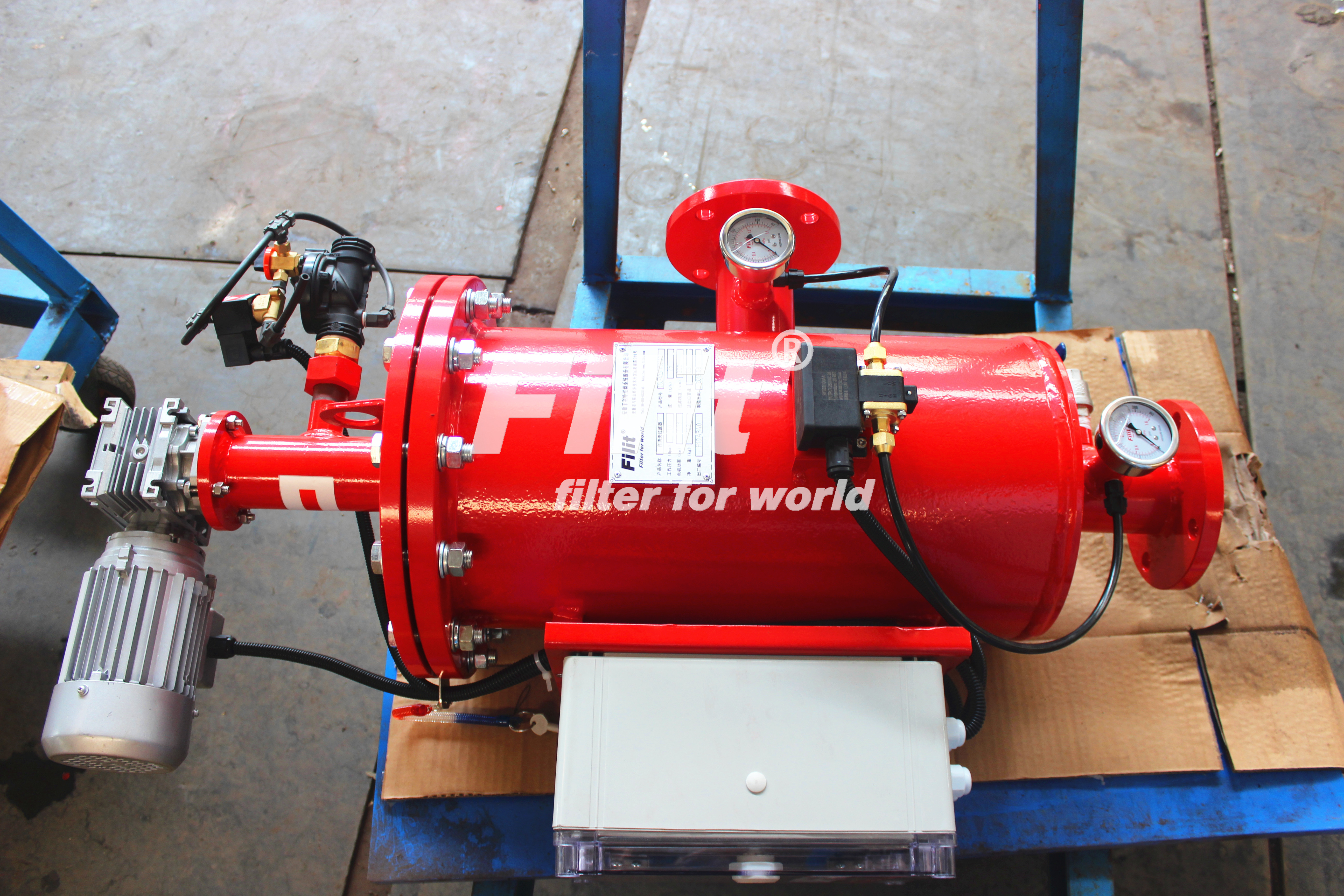 (4)在動(dòng)力系統(tǒng)中,自清洗過濾器應(yīng)安裝在水泵與用水設(shè)備之間,越靠近用水設(shè)備越好。當(dāng)泵與用水設(shè)備之前的壓力超過過濾器的極限壓力,自清洗過濾器也可安裝在水泵之前,并盡量靠近水泵。