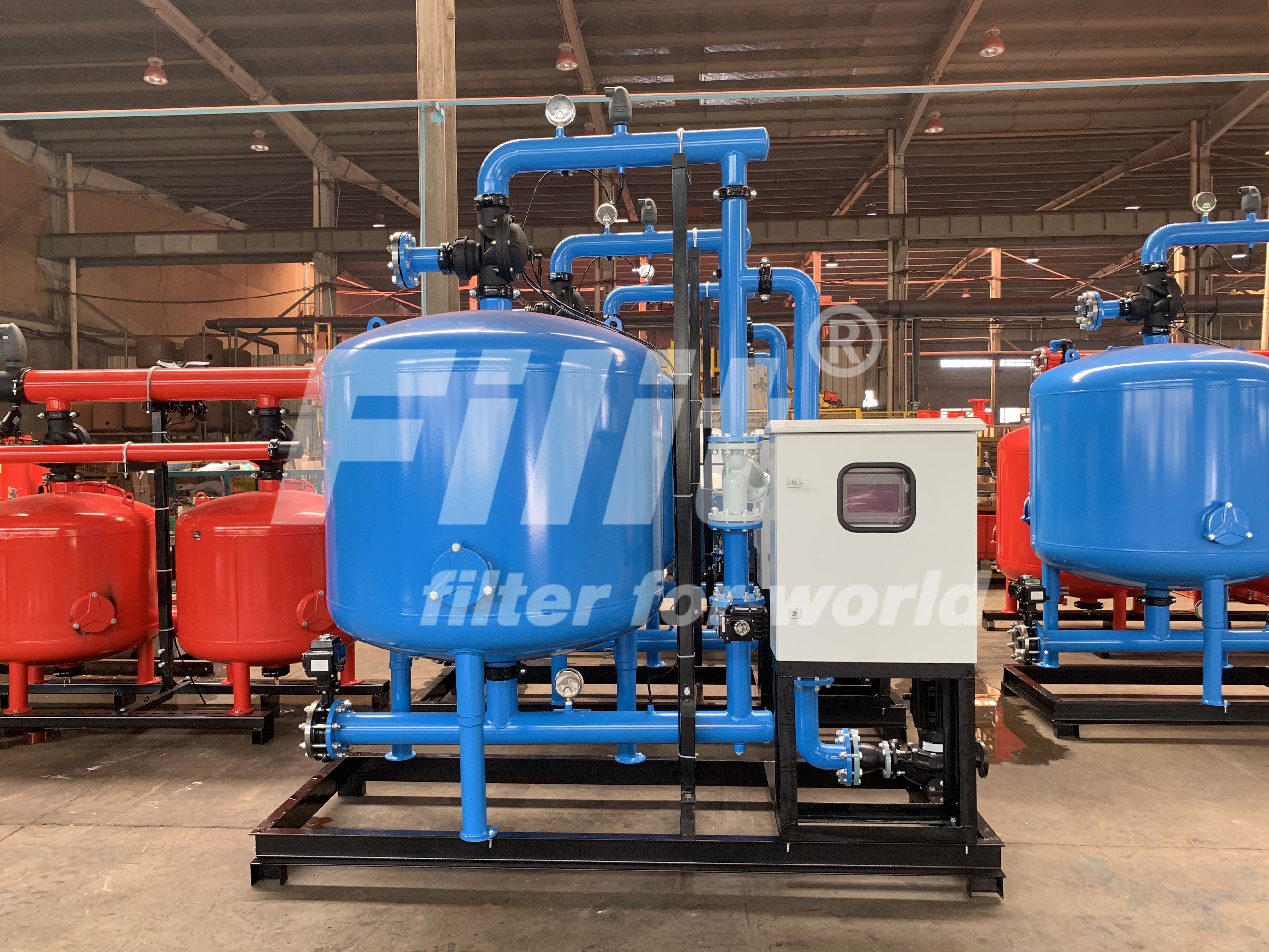 過濾器可作為獨立的過濾系統,利用現有工藝中的供水泵,如果是作為旁濾,也可以單獨配備供水泵,也可以多個處理單元安裝在公用管道上,這樣可以實現此系統無限過濾能力。