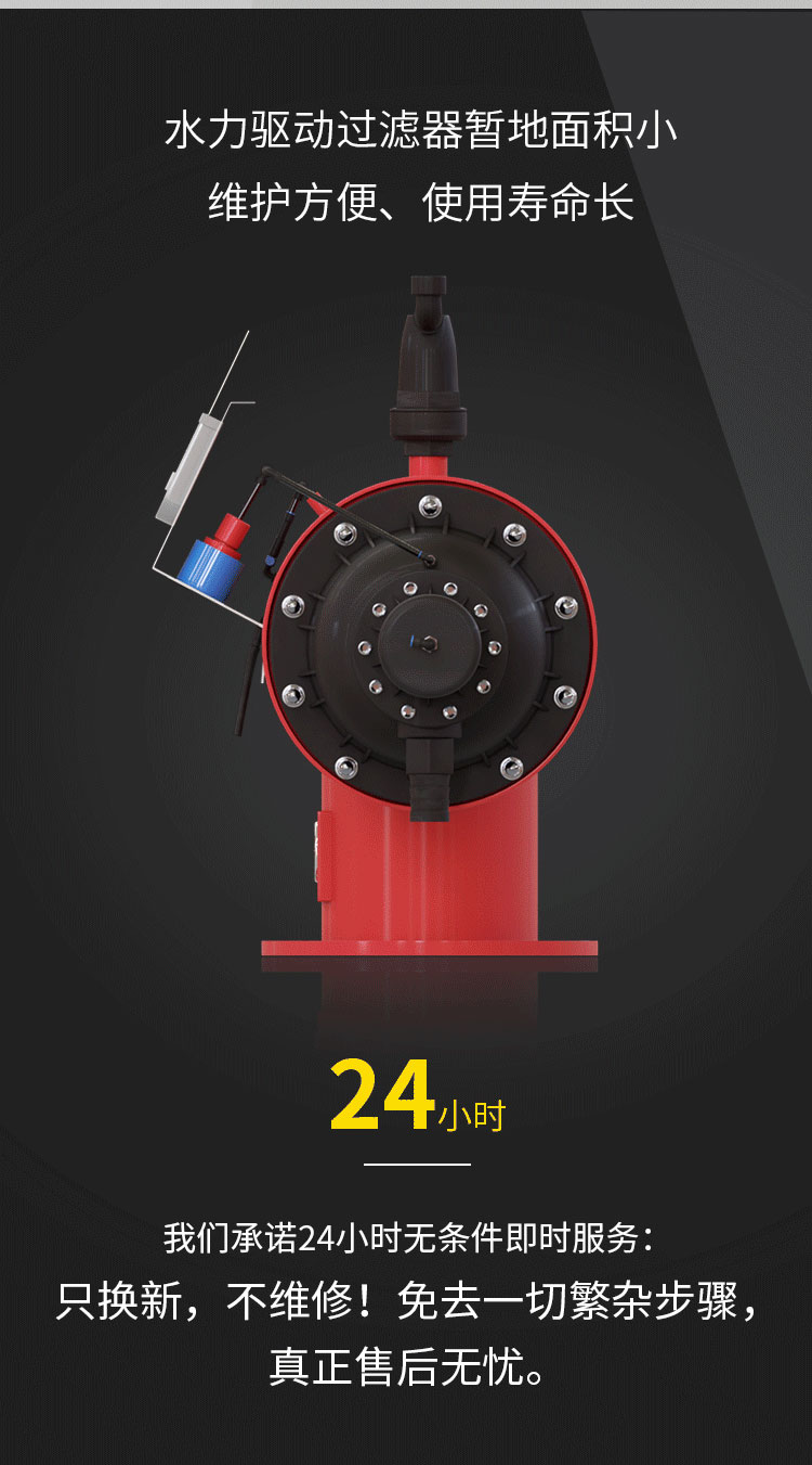 •   FSD系列水力驅(qū)動(dòng)過濾器是一種無能耗自驅(qū)動(dòng)式水力過濾器。適用于農(nóng)業(yè)灌溉、冶金工業(yè)、石油化工、市政工程等其他水處理工程。它巧妙地利用水的壓力這一物理特性,不需要電氣控制,完成了對(duì)雜質(zhì)的吸吮除去;它降低了能耗,簡(jiǎn)化了過濾方式,更適應(yīng)于不易供電的場(chǎng)合;它結(jié)構(gòu)簡(jiǎn)單,維護(hù)方便,使用壽命長(zhǎng),是一種理想的節(jié)能環(huán)保型的水處理設(shè)備.